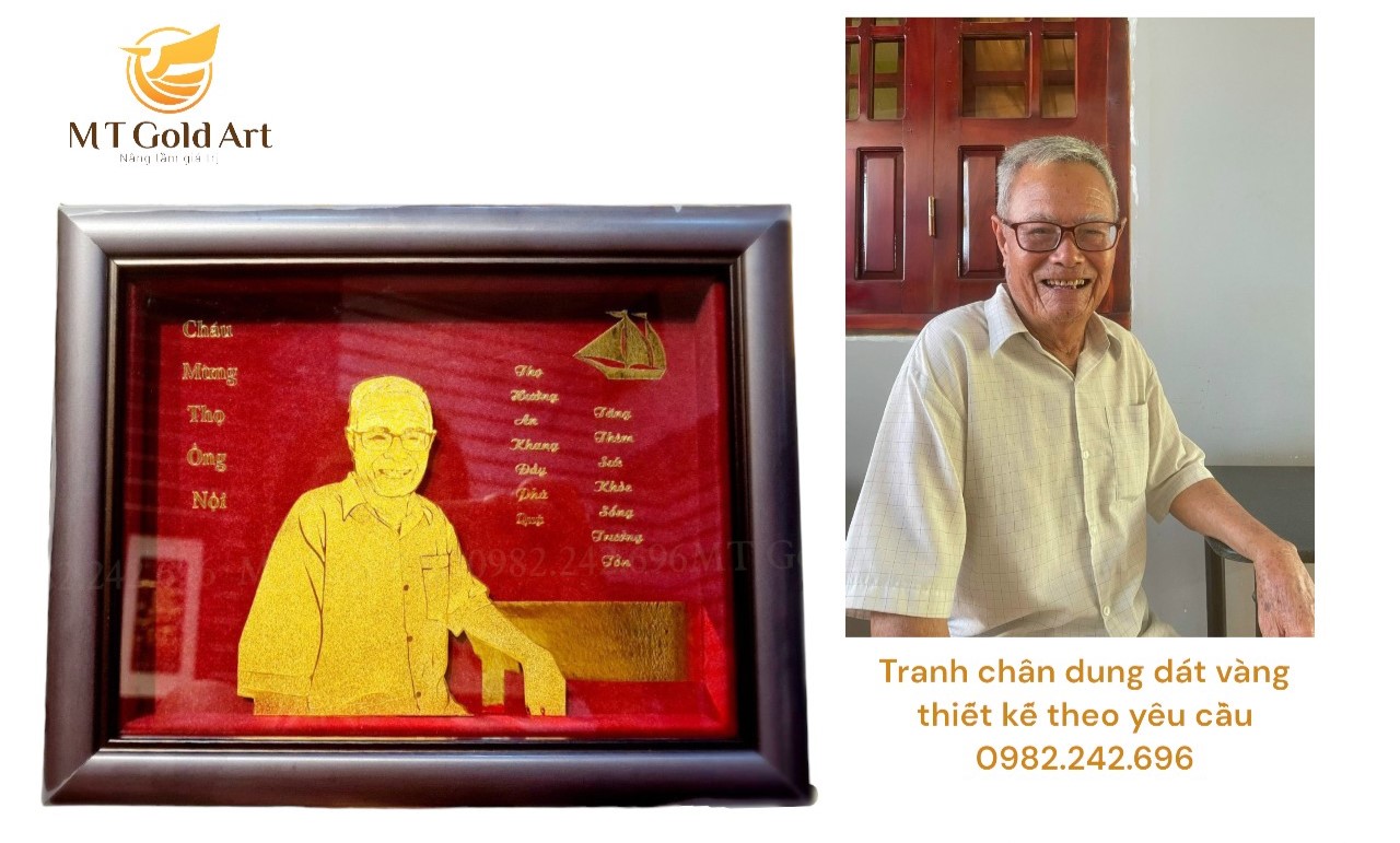 Tranh chân dung cha mẹ dát vàng quà tặng sinh nhật cha ý nghĩa