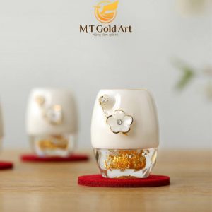 Hoa mai không chỉ báo hiệu xuân về. Mà nó còn là loài hoa mang vẻ đẹp thanh cao của người quân tử. Hình ảnh đóa hoa mai nở rộ được sử dụng nhiều trong trang trí vật phẩm nay đã xuất hiện trên bộ bình ly pha lê sứ đúc vàng của MT Gold Art. Bộ bình ly pha lê sứ đúc vàng hoa mai rất phù hợp làm quà tặng khách hàng là nam giới để đãi rượu bạn bè. Không chỉ sang trọng đẳng cấp, sản phẩm còn gửi gắm ý nghĩa về sự tài lộc, may mắn đến với chủ nhân sở hữu.
