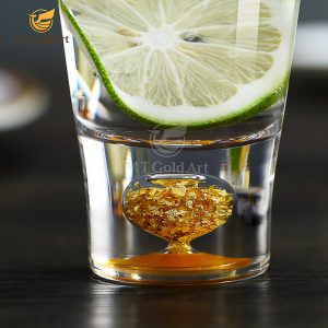 Ly rượu mạnh được làm bằng pha lê cao cấp, đáy ly chứa vàng lá 24K. Thân ly có vẽ họa tiết bằng vàng với thiết kế độc đáo tạo sự bắt mắt. Bộ ly có 2 loại 1 loại có 2 ly , 1 loại có 6 ly. Chiều cao của ly là 11cm, thể tích là 220ml.