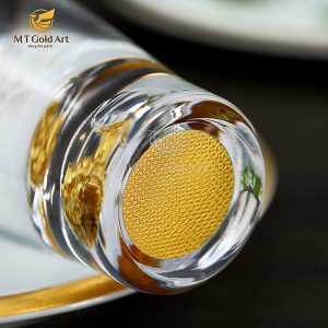 Trong những bữa tiệc, những buổi gặp gỡ không thể thiếu đôi ba chén rượu chúc tụng. Và chén rượu đó chắc chắn sẽ thơm ngon hơn khi được đựng trong bộ bình ly uống rượu pha lê đúc vàng 24K. Sản phẩm được nhập khẩu nguyên bộ bởi MT Gold Art đi kèm hộp quà tặng sang chảnh. Các nhà thiết kế đã thực sự khéo léo để tạo nên vẻ đẹp xa hoa thượng lưu từ vàng 24K và pha lê trong suốt. Món quà tặng pha lê này sẽ thay doanh nghiệp gửi đến khách hàng những lời tri ân đặc biệt nhất. Đồng thời trở cầu nối sợi dây gắn kết tình cảm, mối quan hệ cho cả hai bên.
