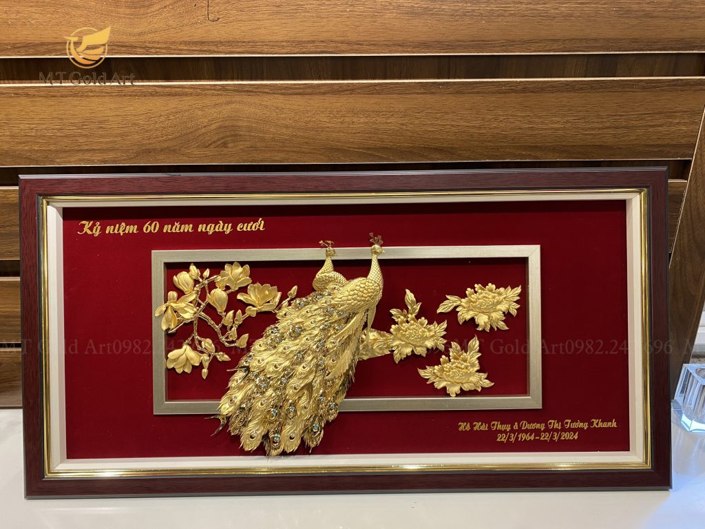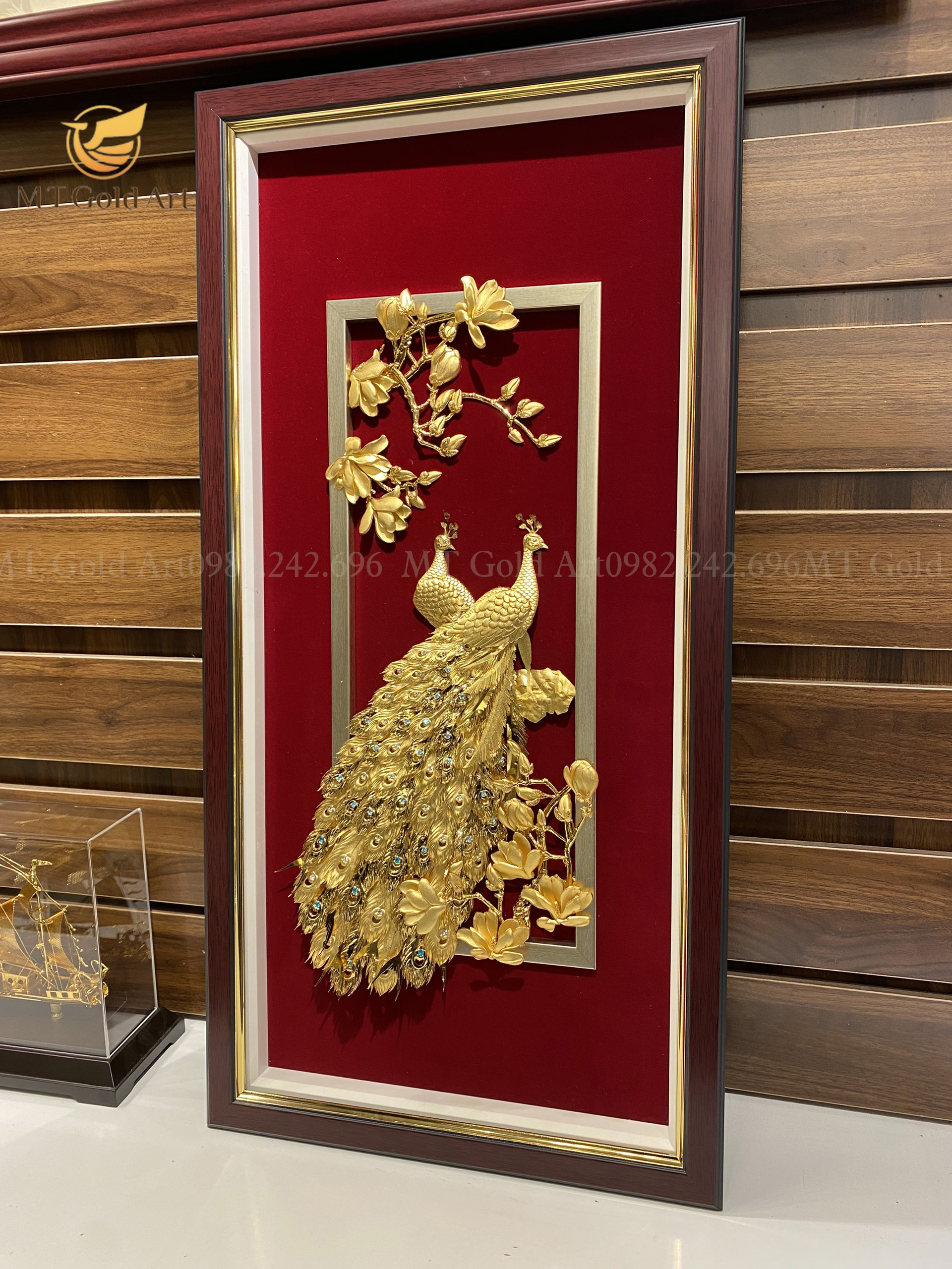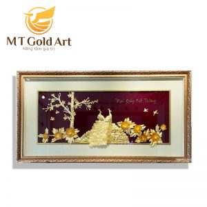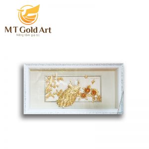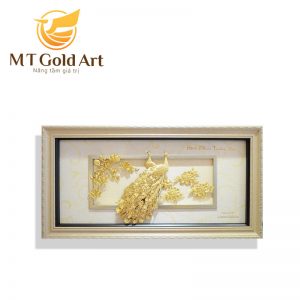 Chim công là biểu trưng của sự duyên dáng và đức hạnh, có khả năng cân bằng âm dương, giúp cuộc sống vợ chồng hòa thuận, vui ấm. Ngoài ra, với bộ lông sặc sỡ của mình, chim công còn được xem là biểu tượng của thịnh vượng, giàu sang. Treo tranh chim công dát vàng trong nhà sẽ mang đến nhiều may mắn cho công việc và cuộc sống vợ chồng.