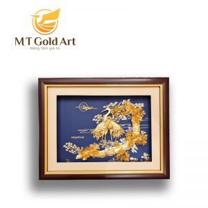Tranh tượng tùng hạc là món quà ý nghĩa kỷ niệm ngày cưới ông bà bố mẹ, tranh tùng hạc làm thủ công dát vàng 24k sang trọng và ý nghĩa. Đôi chim hạc là biểu trưng cho tình yêu son sắc và trường kỳ. Bên em hỗ trợ khắc tên lời chúc, năm kỷ niệm theo yêu cầu miễn phí.
