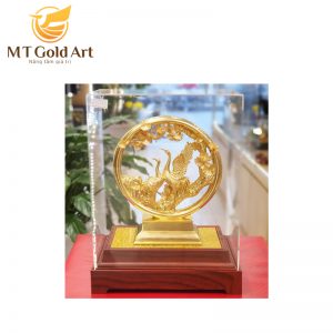 Tượng đôi chim uyên ương trong vòng tròn chiếc nhẫn biểu trưng cho cuộc sống gia đình viên mãn. Tượng đôi uyên ương được dát bằng vàng lá 24k có độ bền từ 40-50 năm. Sẽ là món quà kỷ niệm cho cặp vợ chồng luôn nhớ đến xây dựng một gia đình ấm êm, hạnh phúc
