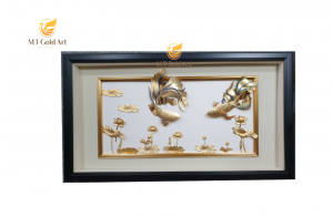 Đôi cá chép bơi lội biểu trưng cho gia đình luôn hòa thuận, đàm ấp và may mắn, tài lộc. Kết hợp với cành hoa mai biểu trưng cho sự xum vầy, vui vẻ và luôn nhiều sức khỏe. Đây là món quà ý nghĩa tặng bố mẹ, bạn bè kỷ niệm ngày cưới thay lời chúc ý nghĩa.
