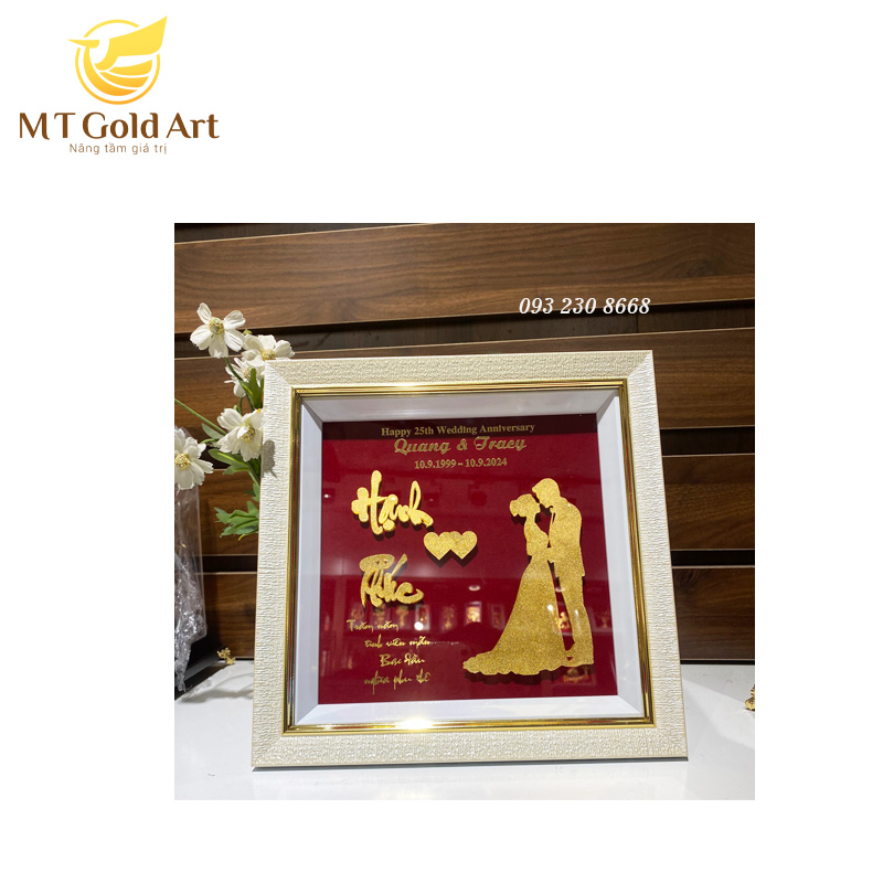 Bức tranh cô dâu chú dể dát vàng vừa sang trọng lại ý nghĩa gợi nhớ những hình hảnh đẹp kỷ niệm về ngày thành hôn của các cặp đôi.