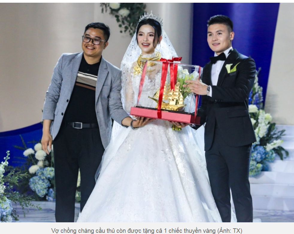 Tượng cô dâu chú rể dát vàng 24k được xem là món quà cưới tiêu biểu trong ngày trọng đại.