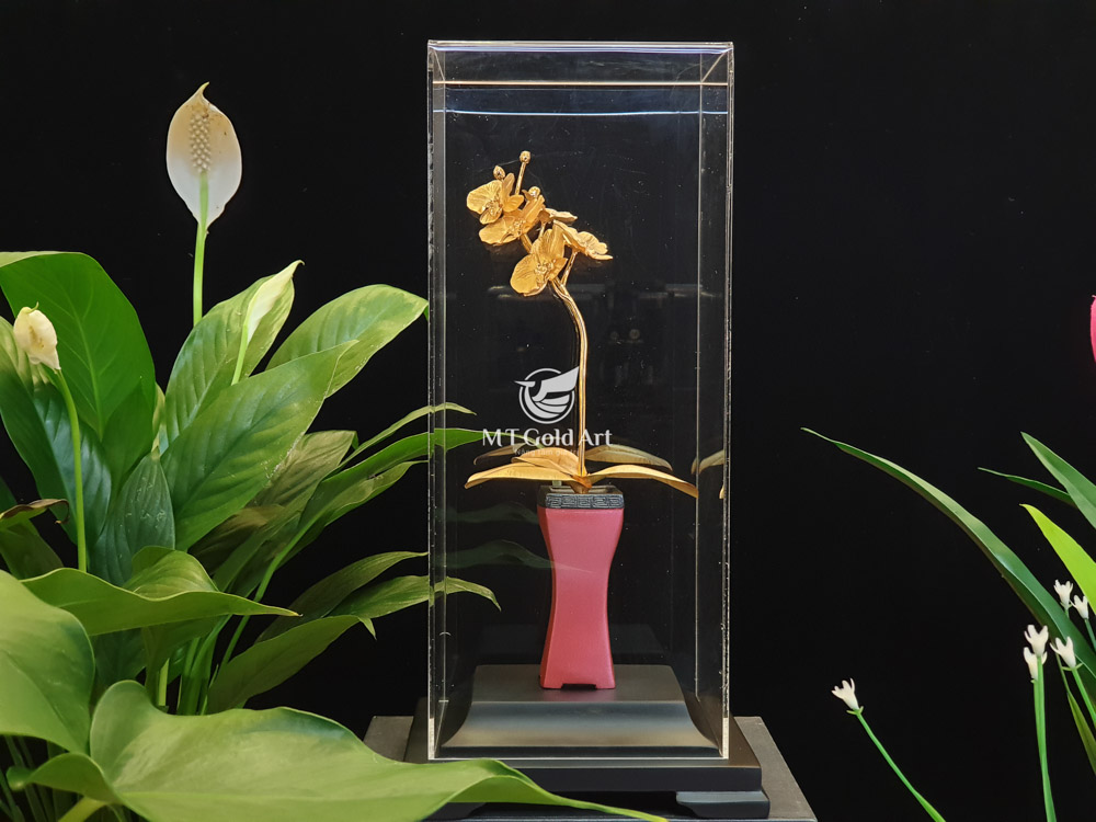 Chậu lan hồ điệp được phân phối trực tiếp bởi thương hiệu quà tặng cao cấp MT Gold Art. Dòng sản phẩm được làm rất cầu kỳ, tinh xảo qua không ít quy trình với độ thẩm mĩ cao . Điểm nổi bật của dòng sản phẩm chậu lan hồ điệp tại Mt Gold Art đó chính là được làm từ chất liệu vàng lá 24k. Tạo nên sự bắt mắt thu hút mọi ánh nhìn. Bó lan hồ điệp được làm tạo hiệu ứng 3D nổi bật trên khung gỗ viền vàng