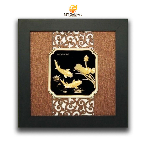 Tặng phẩm tranh cá chép mạ vàng của thương hiệu MT Gold Art vận dụng ý nghĩa may mắn, thịnh vượng của loài cá chép linh thiêng. Đồng thời, kết hợp nhuần nhuyễn biểu trưng cá chép với các hình tượng may mắn khác như: Hoa sen, mẫu đơn, hoa cúc, trăng. Sử dụng chất liệu vàng cao cấp, sang trọng phủ bên ngoài. Mục đích là để tạo nên một tác phẩm nghệ thuật khác biệt, độc đáo và giàu tính nhân văn.